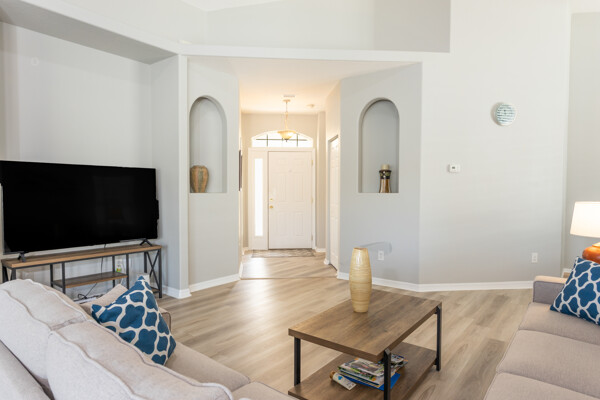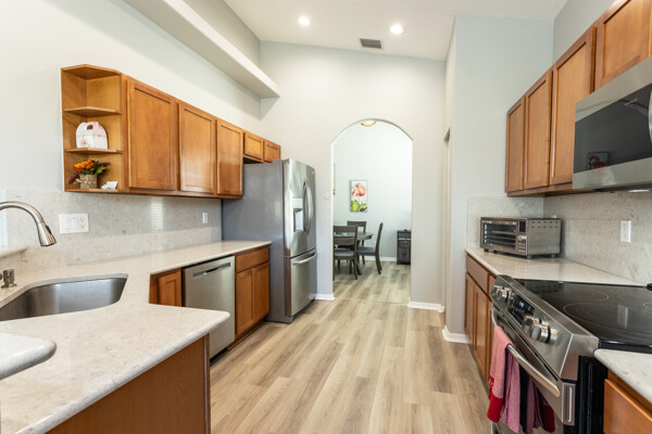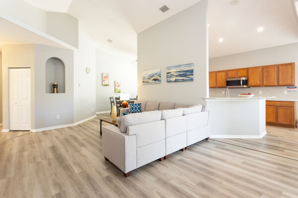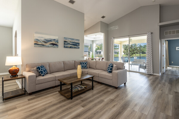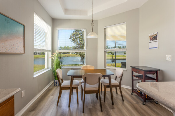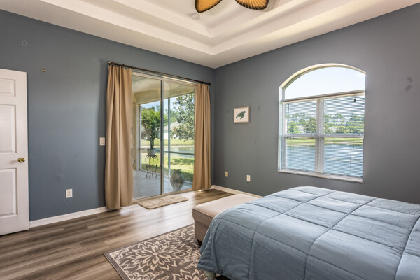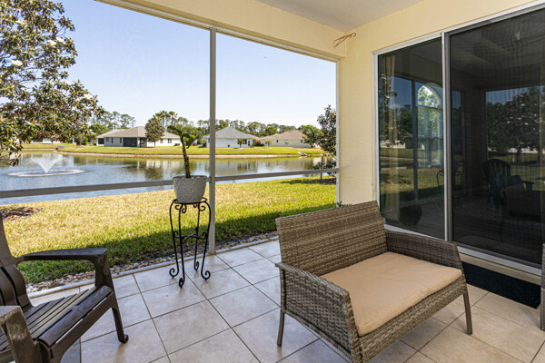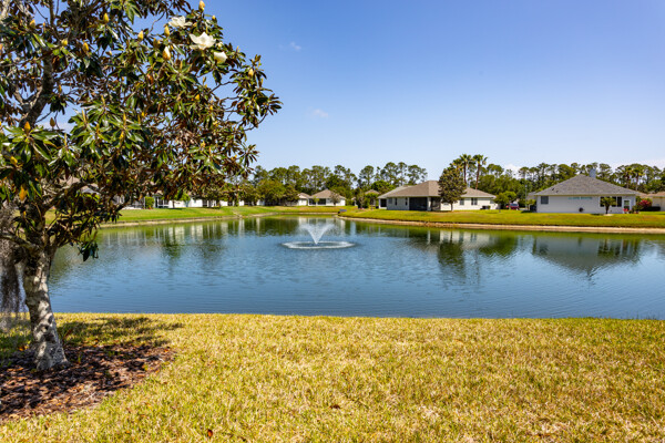 Lakefront Beauty in Rivergate a Gated Community - Move -In Ready! Welcome to this 3 Bedroom, 2-bath lakefront home. Enjoy stunning lake views from every room and relax in the oversized tiled screened - in Lanai overlooking a sparkling lake fountain. This light - filled home features upgraded deluxe vinyl flooring throughout - No Carpet or Tile! It has been gently used as a second home, showing like new! The bright, airy kitchen boast Quartz countertops, a full Quartz backsplash, stainless steel appliances. Charming breakfast nook surrounded by windows. Plus, a formal dining area that is perfect for family gatherings. The spacious master suite includes tray ceilings, a half-moon window, sliders to Lanai and room for a king size bed. The ensuite master bath features a double vanity, cultured marble sinks & walk-in shower. HOA is just $224 a month! Covers All lawn care, shrubs, fertilizing and mulching. Gated entrance, security cameras, a resort style pool & clubhouse. No Age Restrictions! Located just 10 minutes from Famous Flagler Beach with oceanfront restaurants, shopping, hwys. medical facilities and more! Easy to Show! ALL Furnishings are NEW and Negotiable.