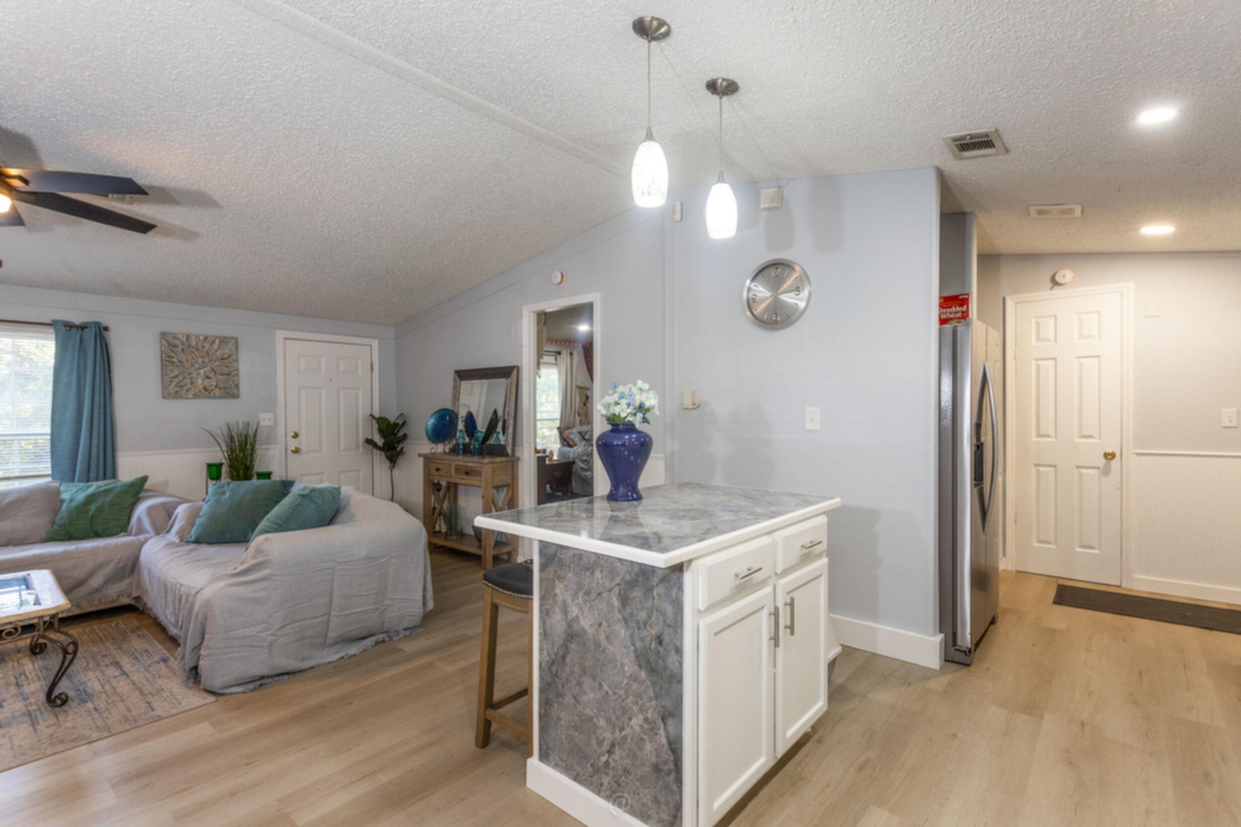 Dual Master Suites & Dream Workshop! This updated 2002 home offers the perfect setup for multi-generational living or guests. Boasting brand-new flooring, trim, and two fully renovated bathrooms, the interior feels fresh and modern. Major systems are updated with a newer A/C (3 yrs) and roof (8 yrs) The real magic is outside: 28x40 Pole Barn with concrete slab. Climate-controlled She Shed + Additional storage shed with electric. Fenced & Gated for privacy and security. Screened porch, covered patio, and raised planters for the green thumb. Fully accessible with a handicap ramp. This gem won't last-bring your hobbies and move right in!