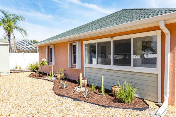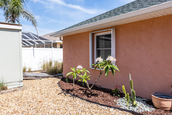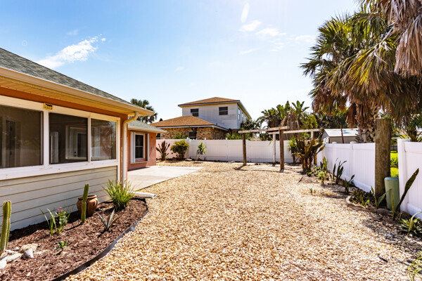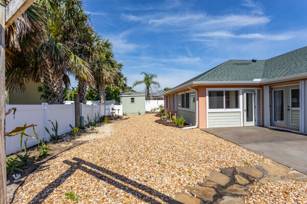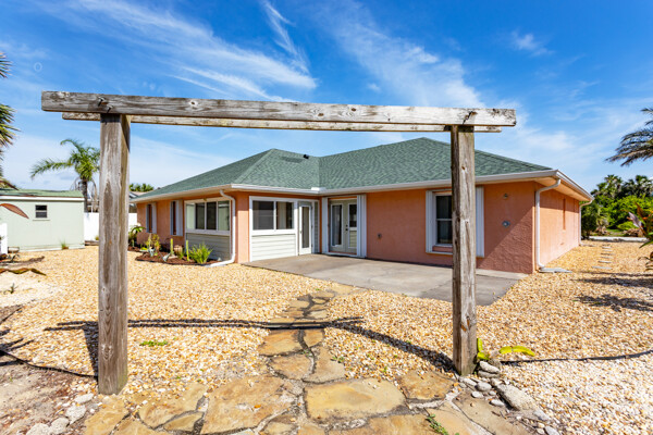 One or more photo(s) has been virtually staged. Live the Beach lifestyle! This beautiful three bedroom block home features an office that could be a fourth bedroom, two full bathrooms, two car garage, shed and large backyard. The house is nestled on a peaceful cul-de-sac in the highly desired neighborhood of Pelican Dunes. Freshly painted, high ceilings, open floor plan, split bedrooms, large walk in closet in primary suite, plenty of storage throughout and all tile floors just perfect for beach life! Enjoy outside living with a glass enclosed patio, circular driveway with tons of parking, tropical plants and trees and a quick jaunt to the beach or the river. Enjoy the refreshing beachside breezes every day from this lovely piece of paradise! This rental will feel like home! Pets are allowed and all lawn care and trash removal are taken care of by the landlord. Thirty day minimum rentals are allowed in this area of the county. Perfectly nested between Ormond Beach and Flagler Beach which offers every fun coastal restaurant and shop that you can imagine. Surf in the morning, walk the dog on Flagler Beach or at the dog park close by and ride your golf cart to dinner! Its a beautiful life!