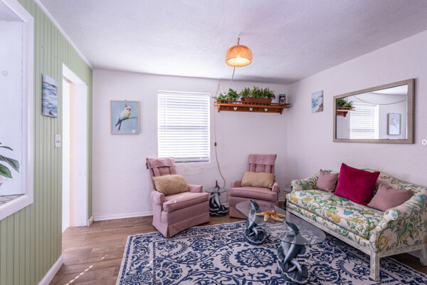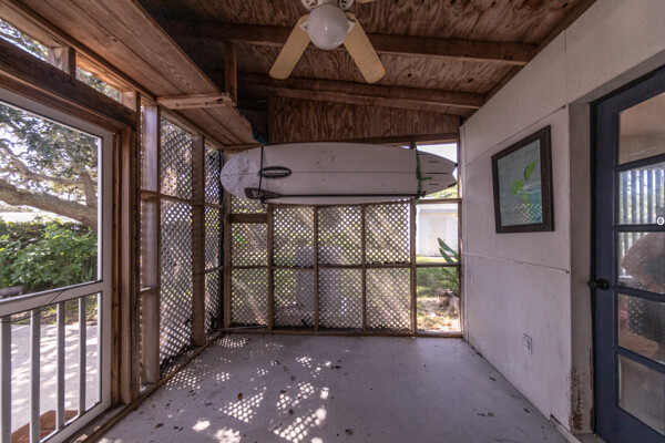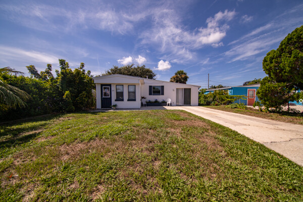 SWEET DREAMS AT THE BEACH! Concrete Block Beachside Bungalow on a great street just a short distance to the Beach or River with this cute freshly painted 3 bedroom, 2 full bathrooms with an indoor laundry plus all Newer: Hot Water Heater 2022, HVAC 2023 & Roof 2017. Adjacent to the living space offering a flexibility for your guests with a second full bathroom. Enjoy the large area that could be used as guest retreat, family room, workout room or office. Kitchen has been modernized with butcherblock and newer appliances. Tile flooring makes easy care throughout the home, wood-grained tiles enhance both style and durability. Step outside to enjoy the screened in patio, and a spacious backyard, perfect for entertaining and relaxing. Screened patio for those lazy afternoon naps with the beach breezes or dining al fresco. Fenced yard with storage shed for all your toys. Ready to move-in, today. This is your opportunity to live your dream of the Florida Lifestyle in this beachside paradise!