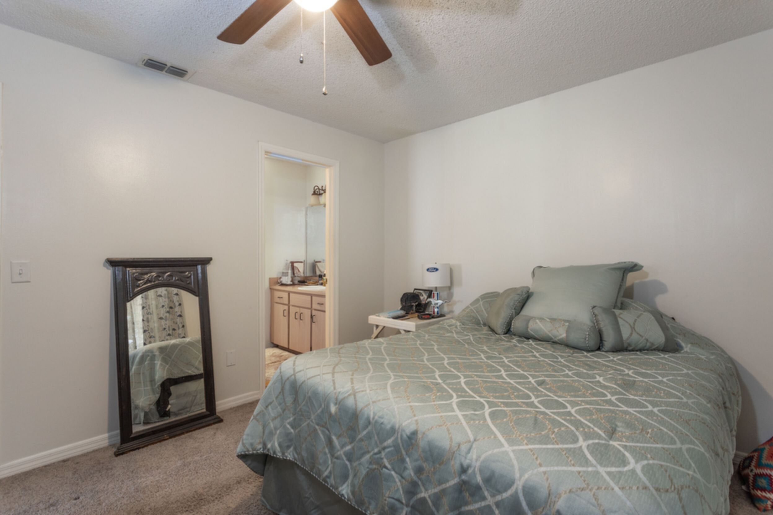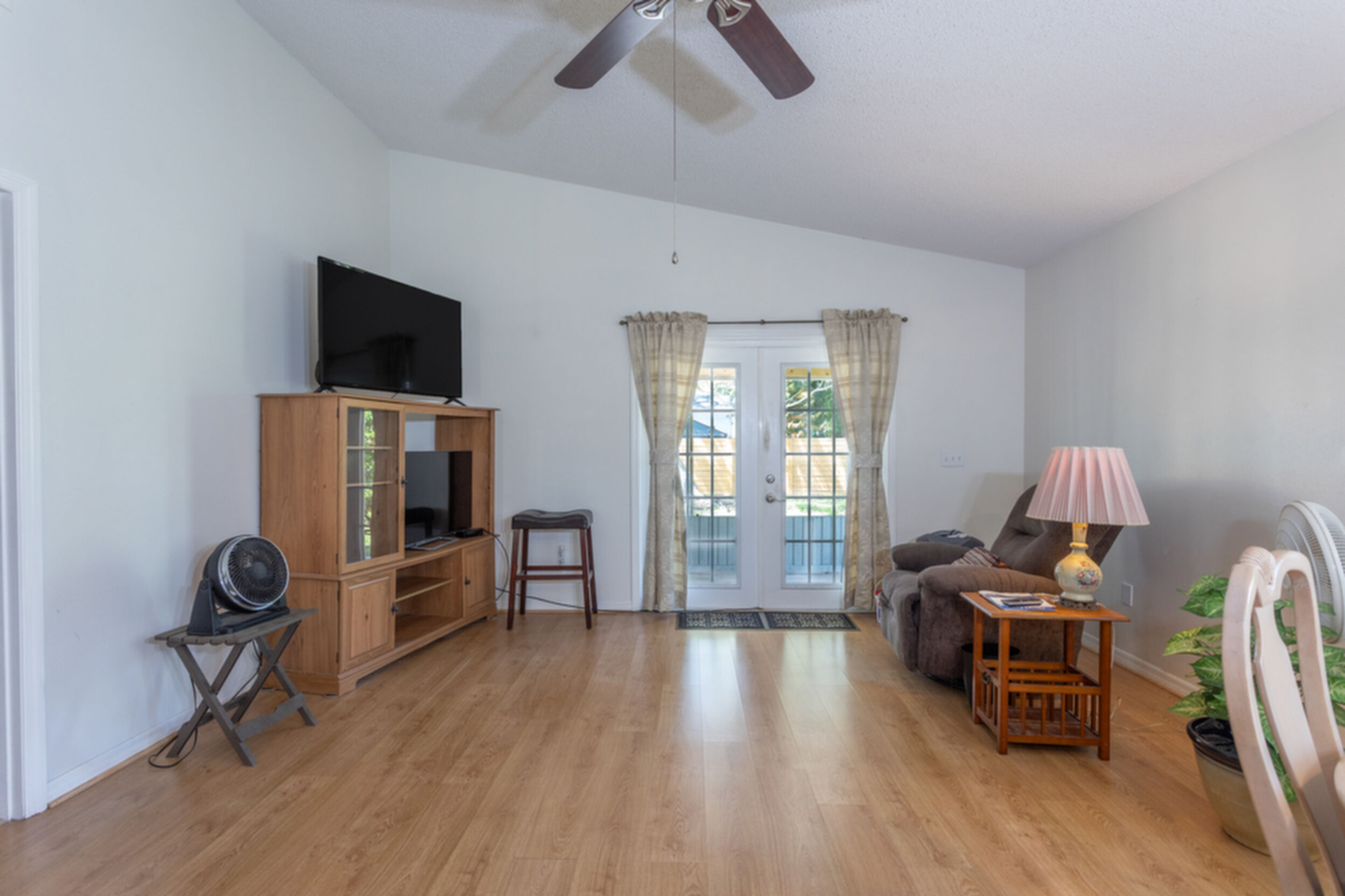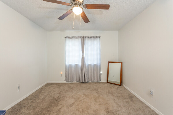 The master bedroom boasts a large closet and an en-suite bathroom, providing a private retreat at the end of the day. The second bedroom is ideal for guests or can be used as a home office for those who work remotely. Outside, the backyard offers a peaceful oasis with a patio area, perfect for hosting summer BBQs or simply unwinding after a long day.