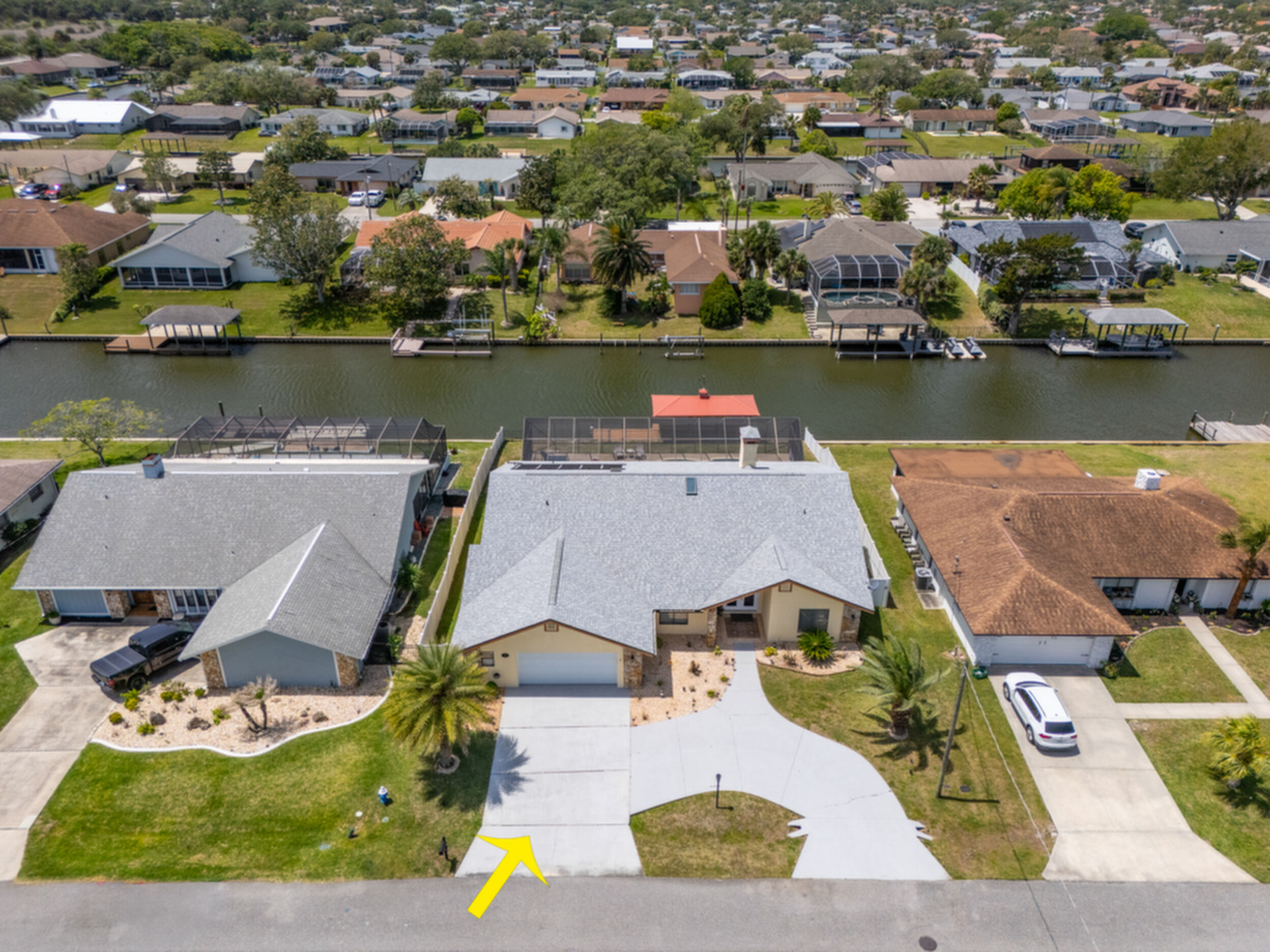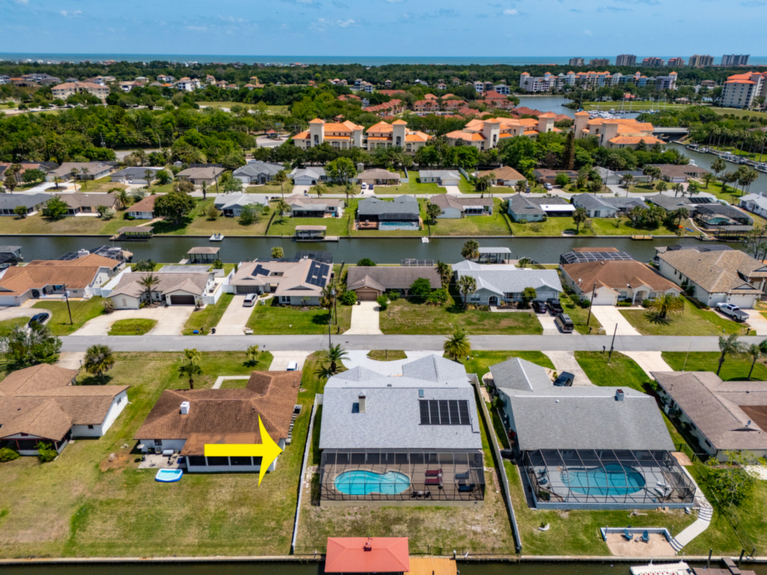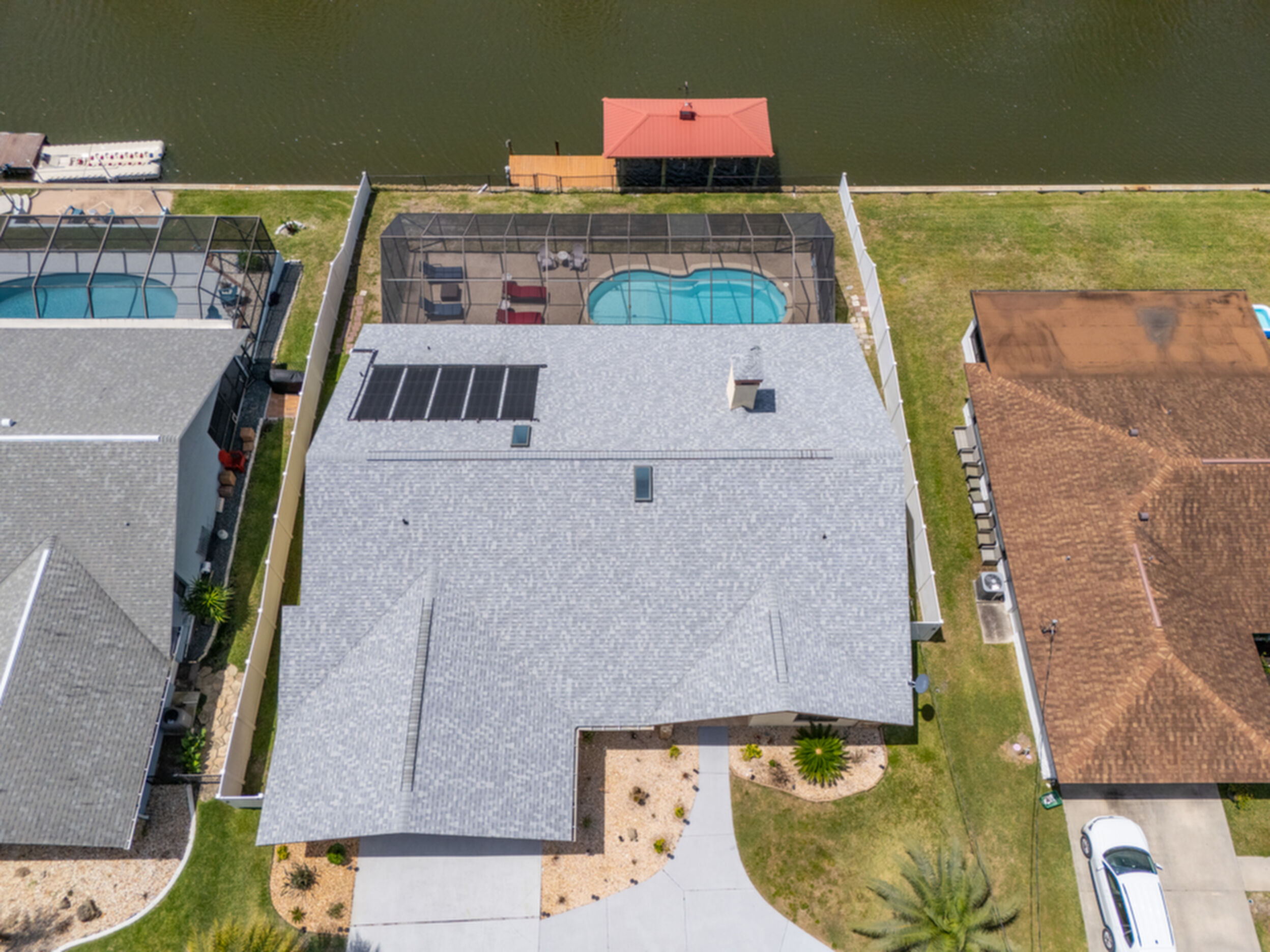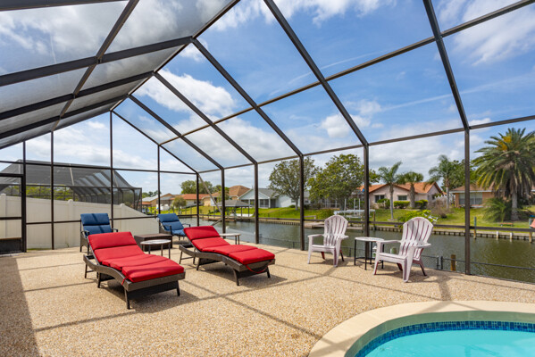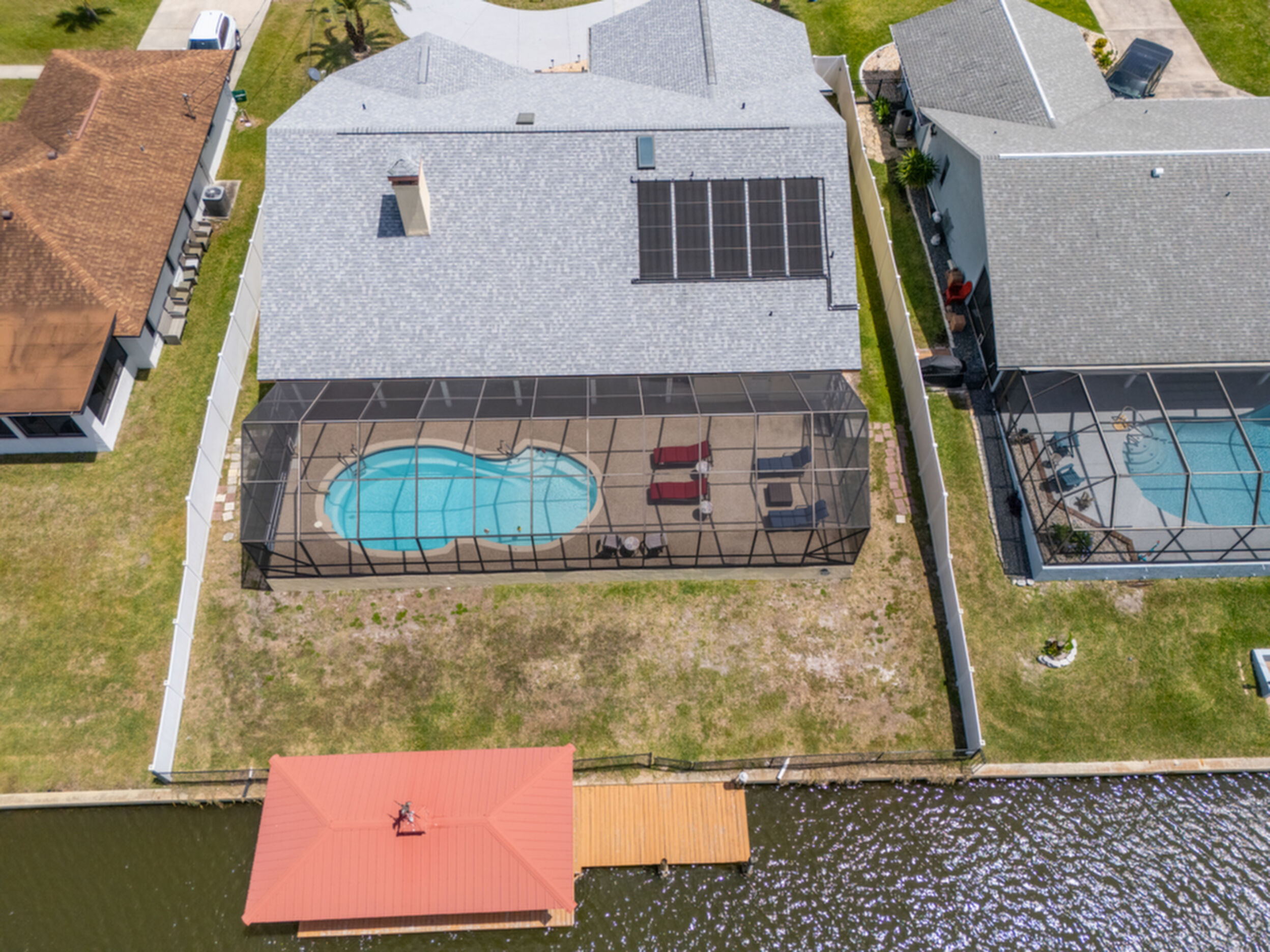 Wake up to dolphins swimming past your private dock. This stunning saltwater canal pool home delivers the ultimate Florida lifestyle. Solar-heated saltwater pool with Chattahoochee deck, covered 10,000 lb. boat lift, and direct Intracoastal access just minutes away. Huge lanai with outdoor kitchen and built-in grill. This home has been renovated to modern perfection - soaring vaulted ceilings greet you at the stunning double glass entry doors. The gorgeous updated kitchen is a showstopper. Zero carpet - hardwood and luxury tile throughout. The master suite is a private retreat featuring an oversized, spa-like walk-in shower. Three bedrooms plus a den/flex room gives you space to live, work, and host. Major updates already done for you: new roof 2022, brand new A/C 2024 with new ductwork, and a whole-house generator. No HOA means complete freedom to continue as a proven vacation rental or make it your forever home. Furniture negotiable. Move in and start the Florida dream immediately.