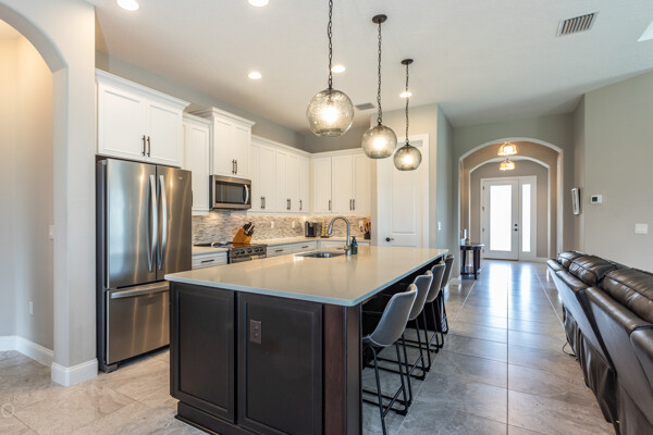 You will find this 3 bedroom 3 bath home both beautiful and functional, well-designed to accommodate both family and guest. The living area has an open floor plan that connects to both the kitchen and dinning, perfect for the casual meal or entertaining. A modern kitchen with quarts countertops and marble back splash. You will love the wood cabinets both stained and painted, with a island almost 10 ft long. The bonus is the walk-in pantry! Throughout the home you will find thoughtful upgrades that provide a touch of elegance and convenance. Premium flooring extends in all rooms, upgraded lighting features and recessed ceiling features. Located in Palm Coast Plantation , this home offers more than just a place to live, it provides a vibrant community and superior lifestyle.