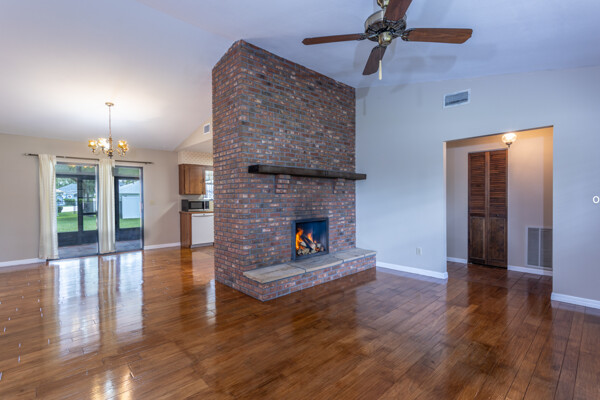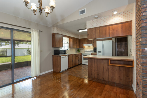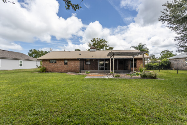 Welcome home to this move-in-ready brick 3 bedroom, 2 bath charmer in a highly established neighborhood just minutes from shopping, top-rated schools, medical services, the beach, and Interstate I-95. Step inside to find a bright, freshly painted interior with refinished hardwood flooring in the main living areas and a classic wood-burning fireplace as the focal point. The kitchen with breakfast bar opens to the dining and living spacesideal for everyday living and easy entertaining. All bedrooms feature brand-new carpet for comfort. Relax year-round on the screened-in back porch overlooking a nice backyard, perfect for pets, gardening, or play. A 2-car garage provides secure parking and storage. Outside, the brick walkway adds timeless curb appeal, while the metal roof (2007) and termite bond deliver long-term confidence and value. Schedule your private tour todayhomes in this location and condition go fast!