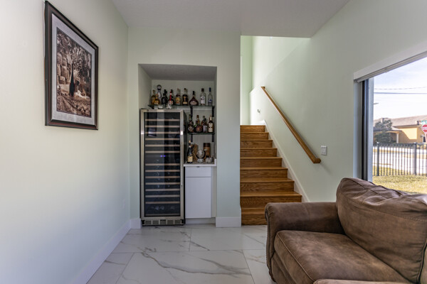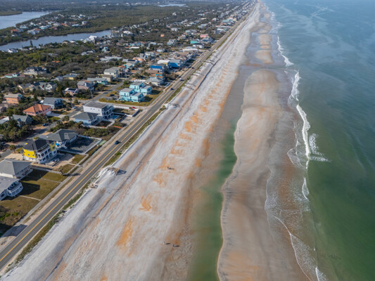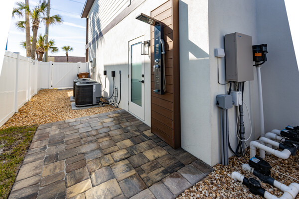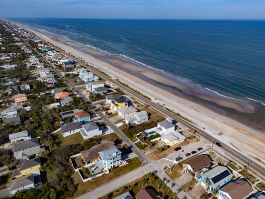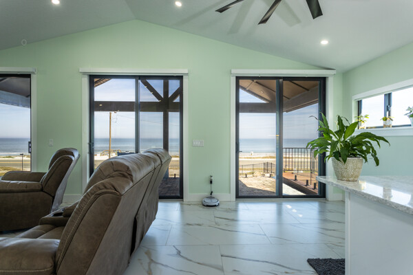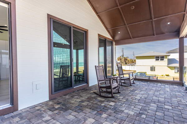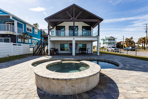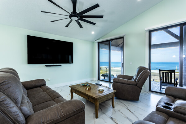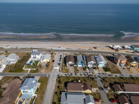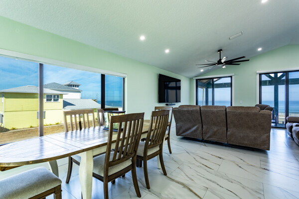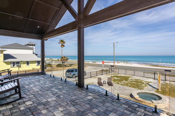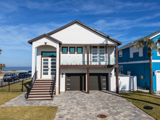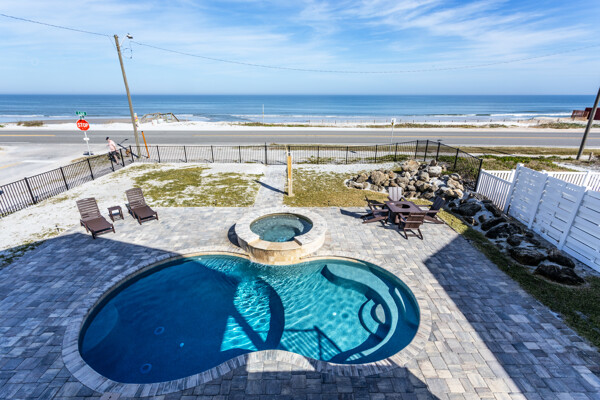 This stunning oceanfront home, located on a prime corner lot in Flagler Beach, offers unparalleled views of the Atlantic Ocean and is just steps from the beach. Enjoy expansive ocean views for miles and the soothing sound of the waves. This property provides the perfect coastal retreat. The spacious interior features 2 generous bedrooms with a full bathroom downstairs. Outside, the home boasts an inviting gas-heated pool and spa, along with a newly added outdoor summer kitchen, a gas fireplace, and two outdoor showers, all within a private, fenced backyardperfect for pets and outdoor gatherings. A remodeled kitchen upstairs features quartz countertops, white gloss melamine cabinets, and top-of-the-line Thor kitchen appliances. The open-concept layout seamlessly connects the kitchen to the dining area, making it ideal for both daily living and entertaining. The back balcony has been extended to 12 feet, providing even more space for relaxation and entertaining while enjoying the stunning ocean vistas. The master suite is a tranquil retreat, with a luxurious en suite bath that includes a large walk in shower, a relaxing tub, dual vanities, and plenty of closet space. Extensive renovations throughout the home include a new roof, impact-resistant doors and windows, new AC units, and brick pavers in both the front and back. Inside, the home features new tile throughout the home, newly remodeled bathrooms, custom closets, 8-foot interior doors, fresh paint and trim, zebra shades, modern lighting fixtures and ceiling fans. This home is also equipped with smart home technology, offering Alexa compatibility for easy control of lighting, temperature, and more. Located close to local restaurants and shopping, this oceanfront gem blends luxury, comfort, and convenience, making it the perfect place to call home. Dont miss your chance to own this exceptional Flagler Beach propertyschedule a showing today!