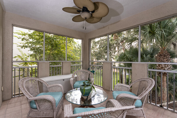Welcome to Unit 1927, a beautifully updated 2-bedroom, 2-bathroom condo where lush oaks and swaying palms create a serene retreat. From the screened, and tiled 12 x 15 ft. lanai, enjoy views of the Intracoastal Waterway and an emerald lake with a fountain. this condo is embraced by a canopy of oaks and palms, creating a peaceful, shaded private hideaway surrounded by nature. Inside, stunning luxury vinyl flooring, plantation shutters, updated lighting, and modern fans add warmth and style. Sunlight fills every room through abundant windows, creating a bright, inviting atmosphere. All furnishings are negotiable, and the condo can be sold turn-key. The HVAC system replaced in 2020 This condo also includes a 10 x 6 detached storage unitperfect for bikes, beach gear, and more. For a monthly HOA fee of $775, enjoy resort-style living, cable, high-speed internet, and access to scenic walking paths along the Intracoastal Waterway. There is NO CDD fee or additional amenities fee! This pet-friendly community offers fun social activities, 2 pools (1 heated)pickleball and tennis courts.