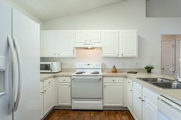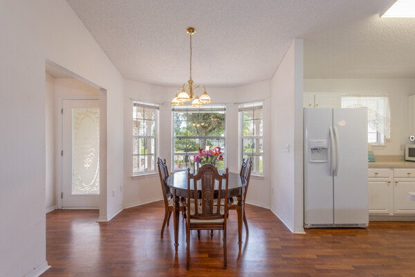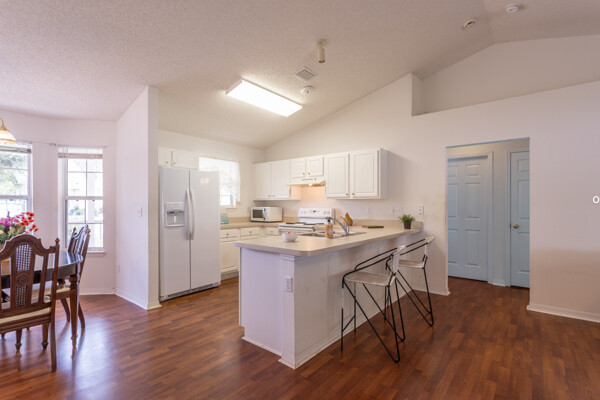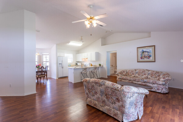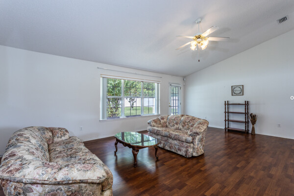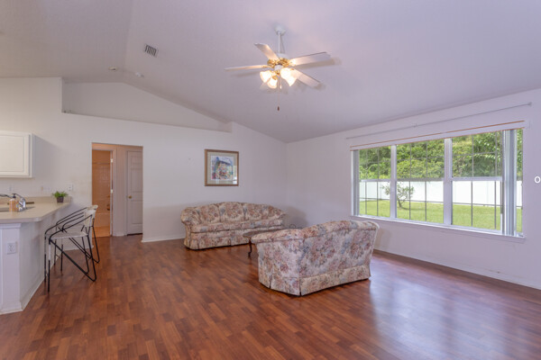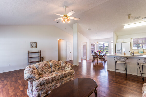 Wow! Three bedrooms, two bathrooms, single-family home located in the W section of Pine Lakes in Palm Coast. Split bedroom floorplan. Laminate flooring throughout the living, kitchen & dining areas. Inside the laundry room. Vaulted ceilings. Roof 2022. Fenced-in yard. Mature fruit trees. Roof 2018, AC 2022, & fence 2022. Most big-ticket items have been updated!! Near golf course, schools, shopping & medical