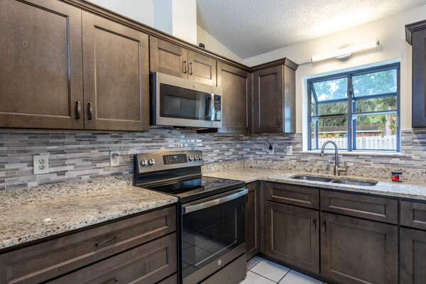 Beautifully Remodeled 2BR/2BA Home on Quiet Dead-End Street. Welcome to your private oasis! This fully remodeled home offers peace, privacy, and modern upgrades. Located on a dead-end street with no front neighbors and lush landscaping, it features an open-concept layout, granite countertops, new appliances, and pendant lighting in the updated kitchen. Enjoy spacious bedrooms, updated baths, and an enclosed lanai under air, wired for sound. Additional upgrades include new LVP flooring, fresh paint, ceiling fans in every room, nearly all new windows, a 2024 roof, new A/C, and paid-off solar panels. A Simply Safe alarm system adds peace of mind. Move-in ready with timeless finishes and smart, energy-efficient featuresthis is the serene, stylish home you've been waiting for!