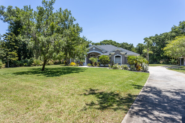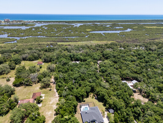 Estate home with no HOA located in the sanctuary of the Bulow Oaks area of John Anderson. Enjoy private country style living while being close to everything. Just minutes to the Atlantic Ocean shops and restaurants of Flagler Beach. This property is partially cleared and has plenty of room to park your boat, RV or add an outbuilding. Heavily treed private drive provides privacy from the road. This open floor plan with over 2900 living square feet has 10 and 11'' ceilings, 3 bedrooms, 3 full baths and one 1/2 bath + office/den with formal & informal areas. Enjoy the sunrise from your covered lanai overlooking the pool and backyard There is even a fenced-in area. Transom windows and the glass entry double door allow natural light throughout. Large kitchen with island and ample counter space for entertaining and a double wall oven. Cool off in the large L shaped pool after catching some sun on your private pool deck. The Property Appraiser considers 3.56 acres of