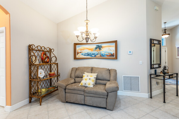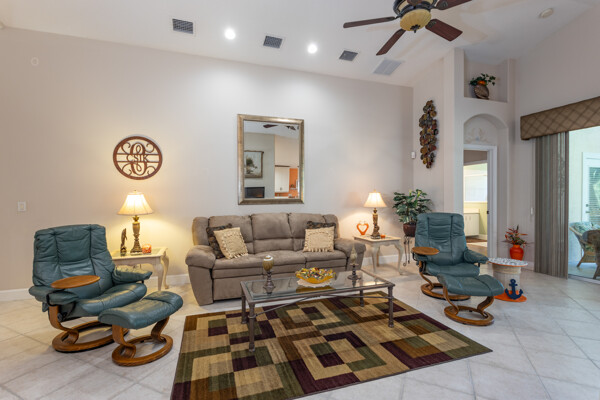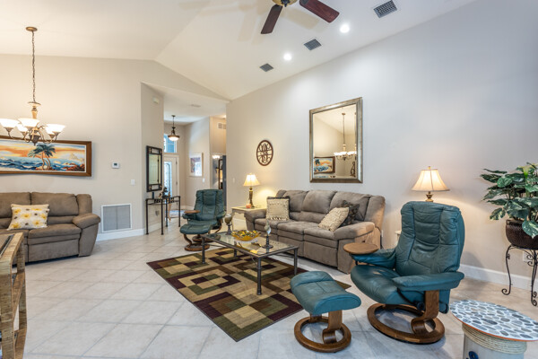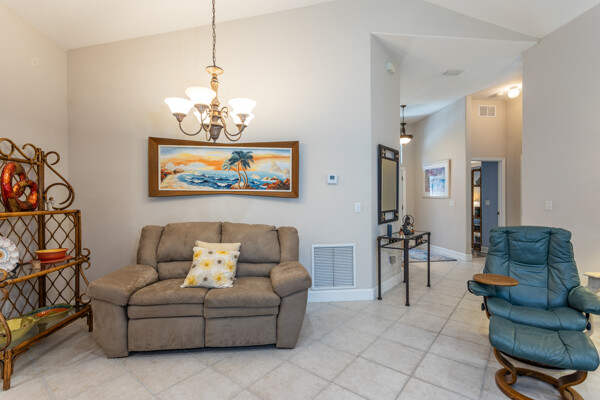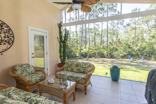 PARK like setting and PRIVACY describe this cute 3 bedroom, 2 bath home in Grand Haven's Southlake Village neighborhood. This home backs up to a preserve (after your 15' back yard) with a firepit. Having its own well for sprinkler saves$$$ in your pocket. The kitchen has been upgraded with solid surface countertops. ALL appliances stay incl. washer and dryer. There is plenty of room for a pool and the master bath has a door to the lanai to allow for a pool bath. Flooring is Pergo wood floors in bedrooms and tile in main living area. The garage boasts a utility sink, pulldown attic stairs with partial floor in attic. NEW roof, 2023; NEW lanai screen, 2024; NEW water heater, 2023; NEW a/c, 2024; NEW exterior paint ,2024; NEW garage floor paint 2025!!!NEW, NEW, NEW. And for the "snow birds" there is furniture negotiable.