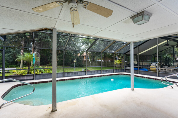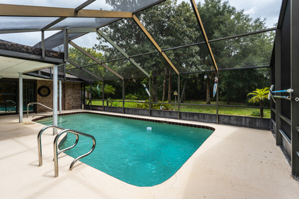 Tranquil Trails Screened Pool Home on almost half an acre lot. Enjoy the treasures that The Trails offers with long hiking/bike paths, tennis courts & pools. Solid built brick construction 4-3 split floor plan with an in-law suite with private pool entrance. New Roof 2020, Windows-sliders 2016 & 2013. Formal Living and Dining Rooms. Family Room has a fireplace with access to pool area, view to Eat-In area. Spacious wide lot provides plenty of privacy off cul-de-sac between you & the neighbors. Be prepared to be surprised with this hidden gem with its oversize Master En-Suite with his & her closets. Relax & enjoy watching the birds on your screened Patio Party Room for entertaining. Indoor laundry room, lots of storage in garage. Plenty of parking with a large driveway wide enough for two cars. Lawn irrigation. Centrally located with highly sought after schools, shopping, hospitals & beaches. Great opportunity to live in the Florida Lifestyle in the heart of Ormond Beach!