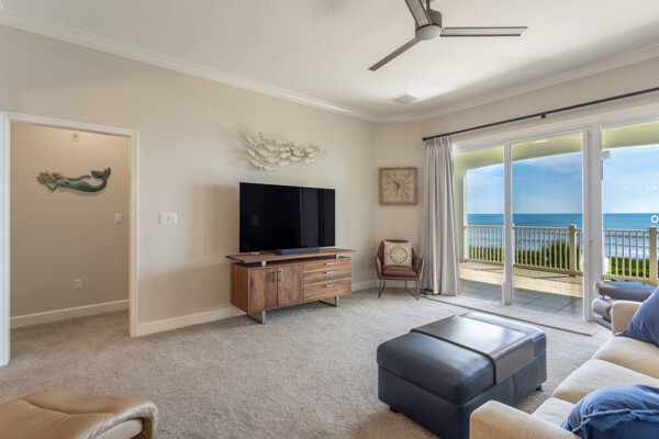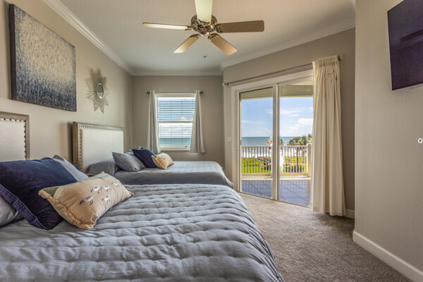 Wake up to breathtaking direct ocean and beach views from this third-floor, 3-bedroom, 2-bath condominium in the highly sought-after Cinnamon Beach community. Enjoy spectacular eastern sunrises and cool sea breezes while overlooking the cinnamon-colored sands and rolling Atlantic waves. This desirable floor plan is the only one in Cinnamon Beach featuring balcony access from both the main living area and the master suite, thanks to a private sliding glass door from the bedroom. The tiled balcony is the perfect spot to watch dolphins, and North Atlantic right whales migrate offshore between November and April. Inside, the home has been freshly painted and features new carpet and all-new high-end appliances, including refrigerator, stove, microwave, dishwasher, washer, and dryer, plus a new water heater. The remodeled kitchen shines with new cabinets and granite countertops, while both bathrooms have been upgraded with new cabinets and countertops. Designer furnishings from Crate & Barrel and Pottery Barn are included, making this home move-in ready. This condo has not been rented, has been privately owned and meticulously maintained, and includes a private storage locker in the garage. Community highlights include two resort-style pools, a game room, fitness center, seasonal restaurant/caf, and a convenient beach walkover just steps away. Short-term rentals are permitted, offering exceptional investment potential.